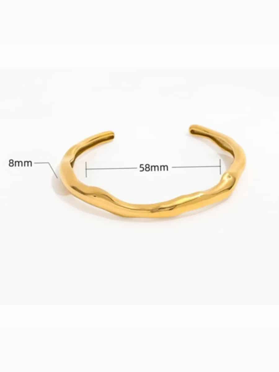 Muun Studios Armbånd dream – Guld ♥ Dette smukke armbånd fra Muun studio er et moderne og organisk formet cuff armbånd. Armbåndet er lavet i stainless steel, og er forgyldt med 18K guld, armbåndet er belagt med en vandafvisende PVD-belægning.