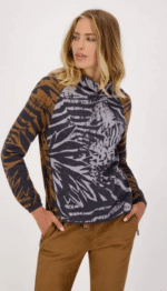 Lækker strik fra Monari, i smarte grå og brunlige farver. Modellenn er med lange ærmer, samt er den med en stående halsudskæring, der giver trøjen et causal look. Denne striktrøje fra Monari, er med imponerende detaljer, fx. at den er pyntet med små sten, og har en lynslås ved siden, som du kan lukke op. Farvernes kombination spiller flot op til hinanden, og fanger ens opmærksomhed, med sit elegante detaljer. Strikken har et super lækker kvalitet, der er lavet af 100% Boomuld, som er ekstremt behageligt at have på. Brug denne trøje til et par fede bukser og en jakke, for at opnå smukt og afslappet look.