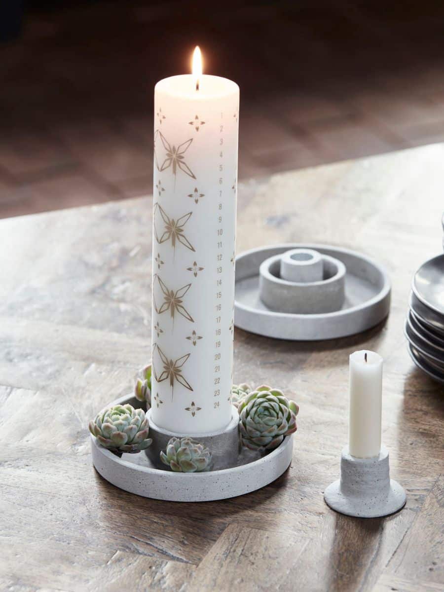 House Doctor candle stand daca ♥ Flot lysestage som kan blive til 2 stager. Denne lysstage kan både bruges til blok lys og små alm. lys. Brug denne lysestage til kalenderlys styles med små grankogler eller små julemos. Den er lavet i grå polystone for et cementlook, der giver din juleindretning et industrielt strejf