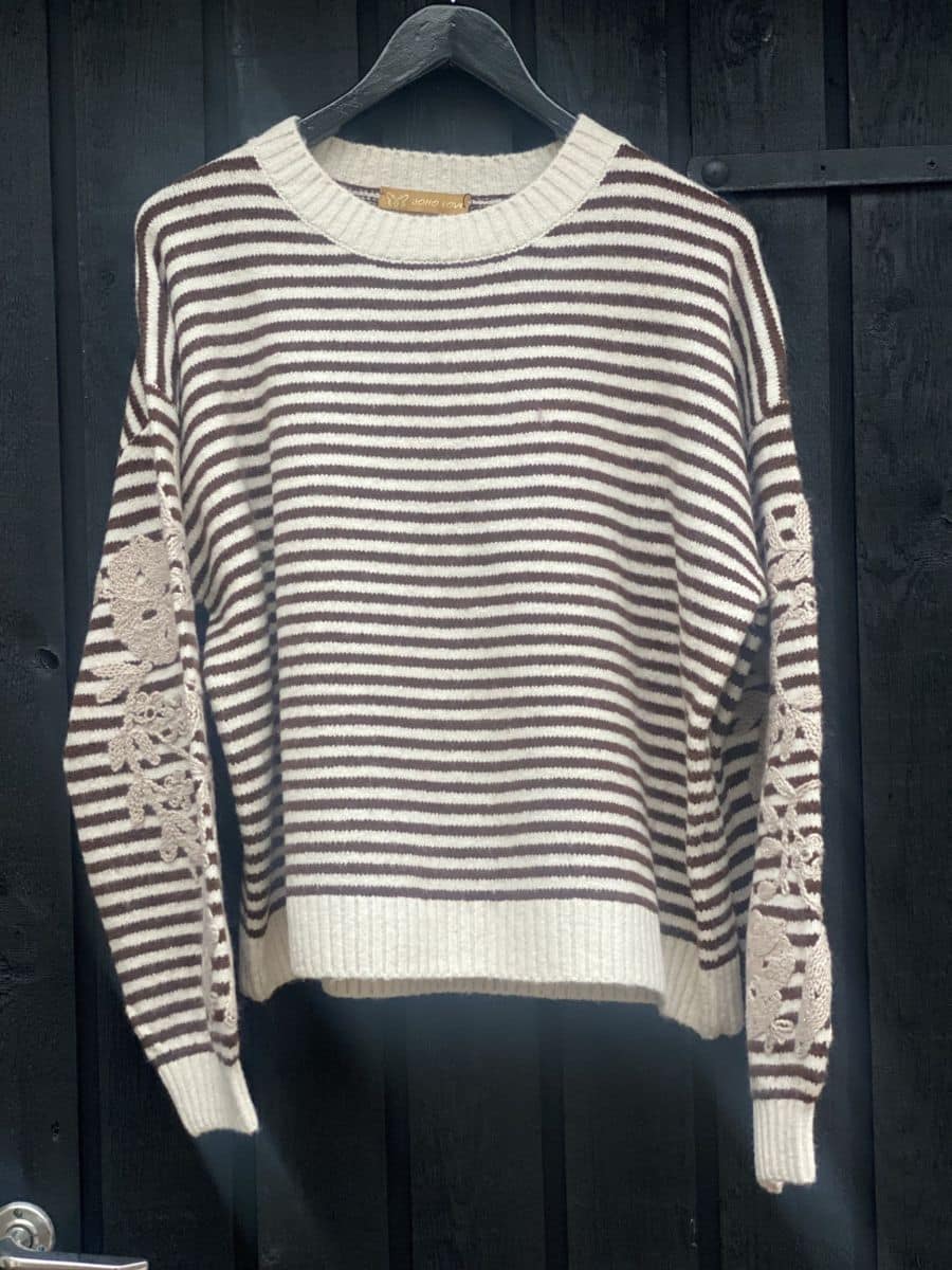 Boho Love Strik – Brown Stripe ♥ Denne smukke Boho Love strik er i en lækkert stribet mønster i brun og hvid, strikken er fyldt med en masse lækre detaljer. Denne lækre strik er lavet i lækre materialer, som gør den super komfortabel at have på.