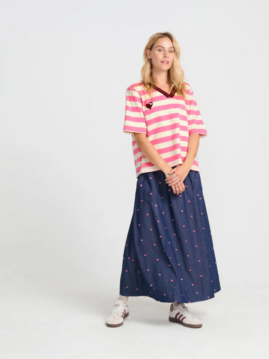 Denne t-shirt er et alsidigt must-have, som hurtigt bliver en favorit i garderoben. Materialet holder formen vask efter vask, hvilket gør den til en pålidelig og stilfuld basis i enhver sæson.