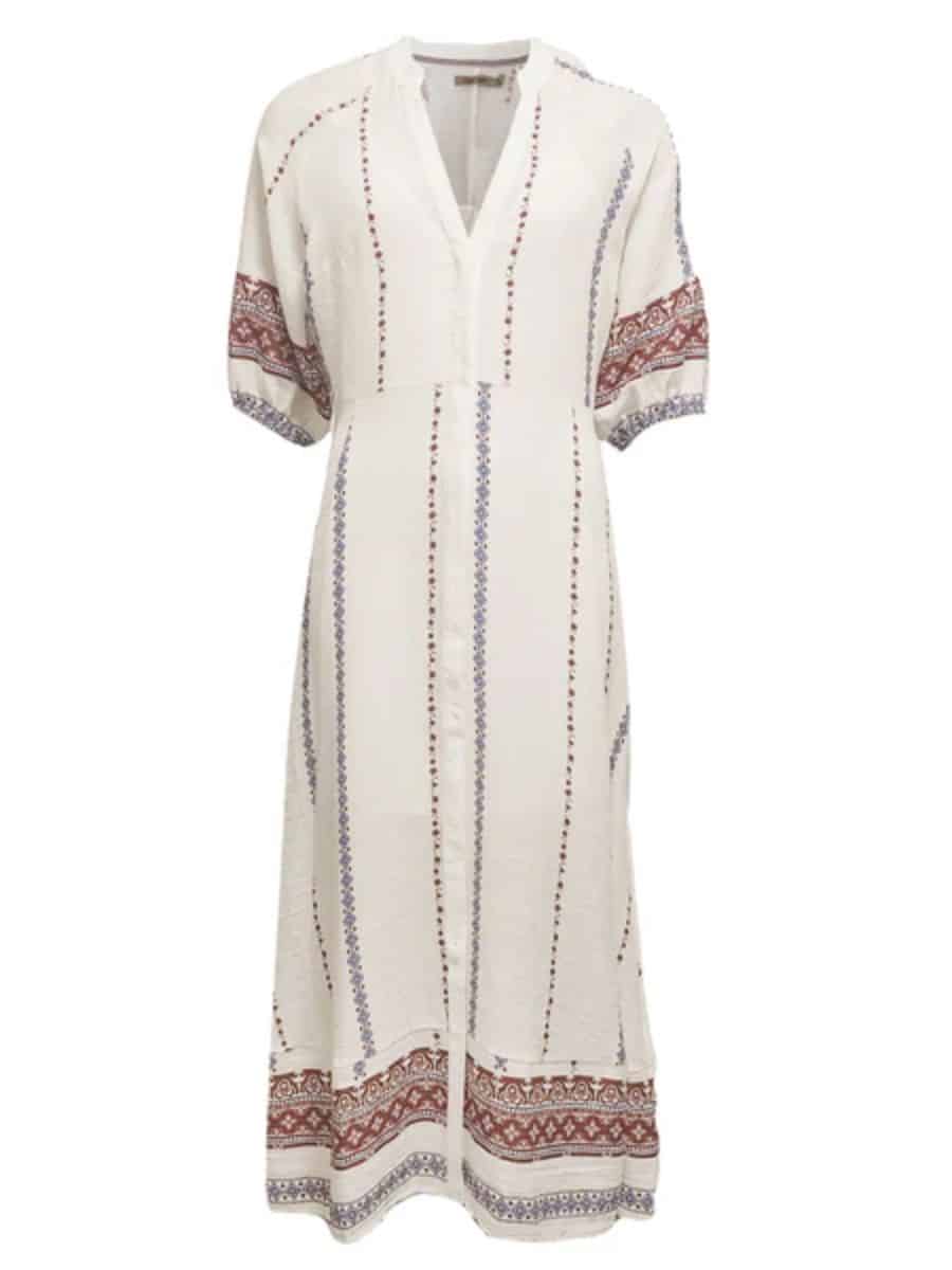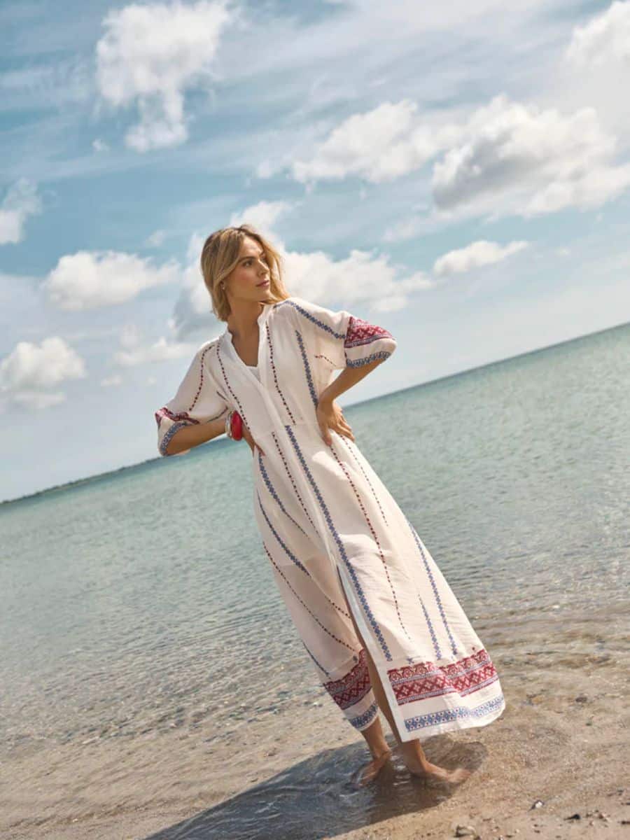 Styl denne smukke Costa Mani kjole med et par smarte klipklapper, og med en masse smarte smykker.
