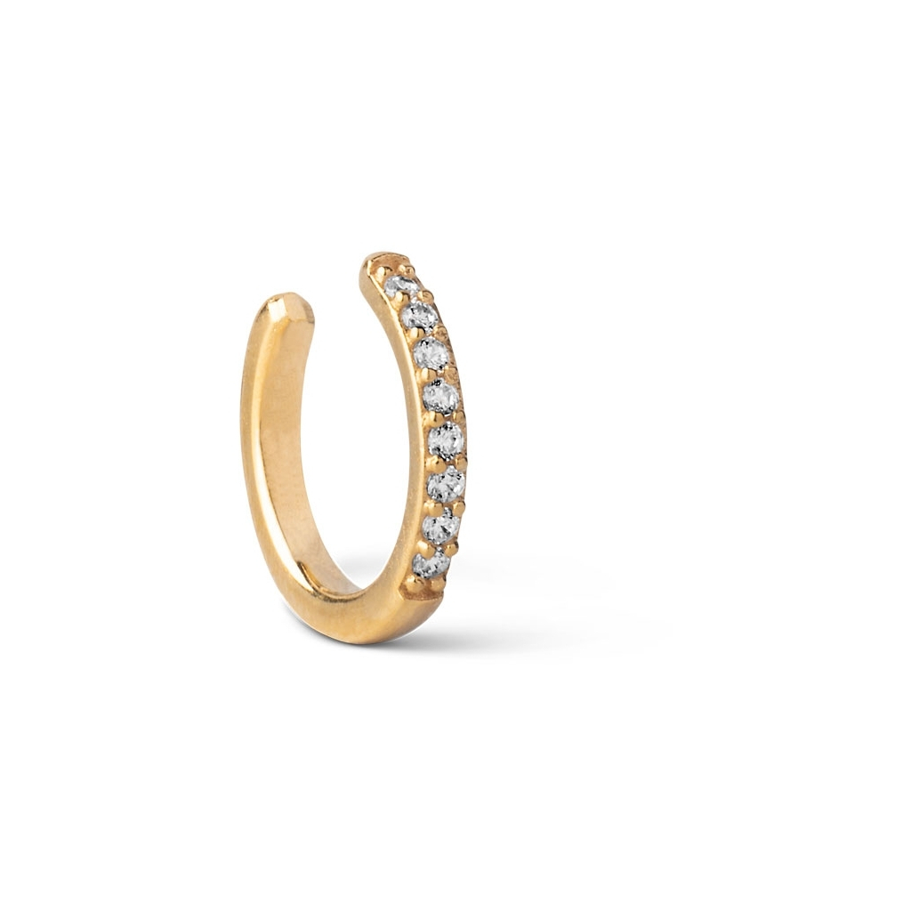 Denne fine Auria Cuff er en smuk style med små glitrende cubic zirkonia. Auria er perfekt til dig der elsker at mixe enkle og elegante detaljer med andre fine øreringe. OBS: denne style må ikke klemmes sammen eller udvides, men skal placeres på øret hvor den vil passe bedst i nuværende størrelse. Denne øring er bare super fin.