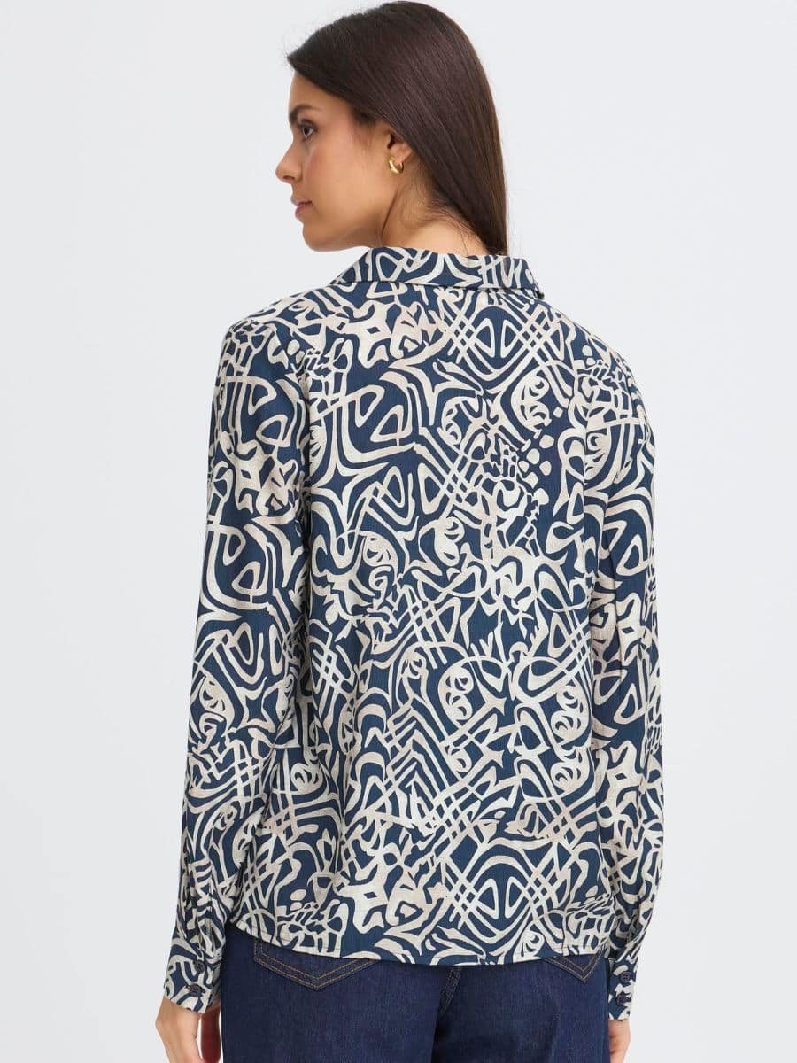 Fransa frarinna Bluse – Art Lines Navy ♥ Denne smukke Fransa bluse er i en smukt lines print, i en smuk grå/hvid farve, og med en smuk blå baggrund. Blusen er lavet i lækre materialer, som gør den super komfortabel at have på.