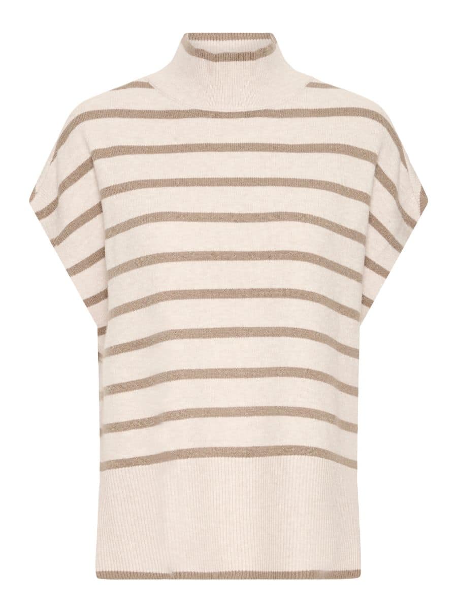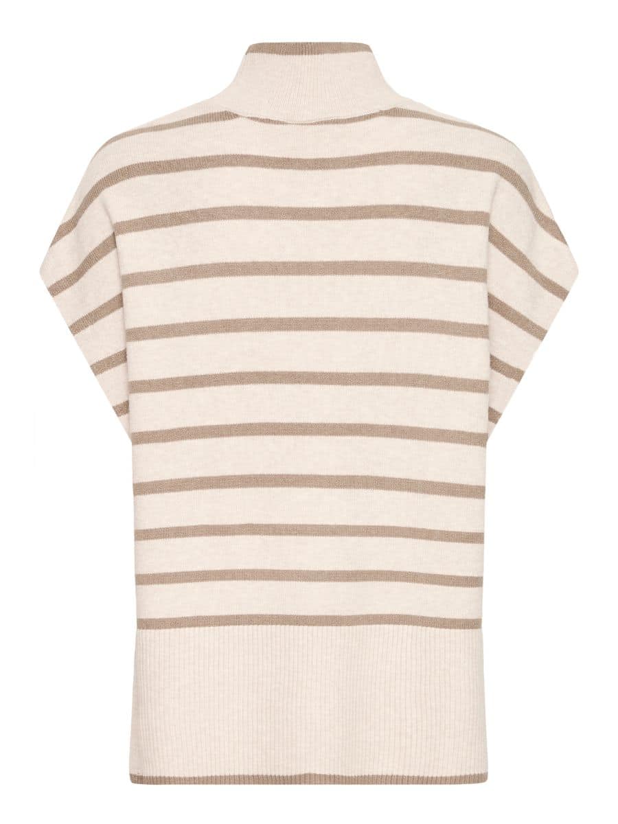 Fransa FRbitte Strik – Taupe ♥ Denne smukke strik vest fra Fransa er i en smuk beige grundfarve, og har et smart stribet mønster i en lækker taupe farve, som gør denne lækre Fransa vest perfekt til efteråret. Vesten er lavet i en masse lækre materialer, som gør den super behagelig at have på.
