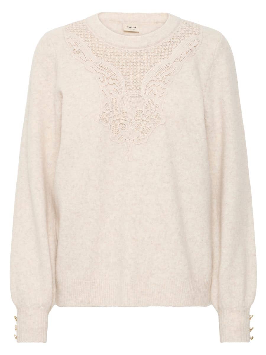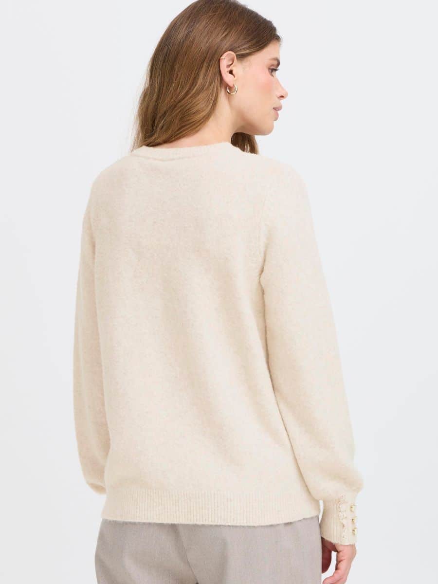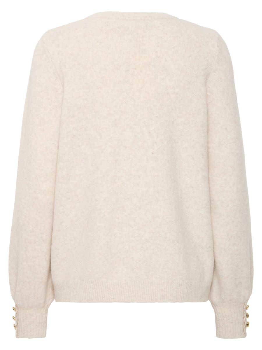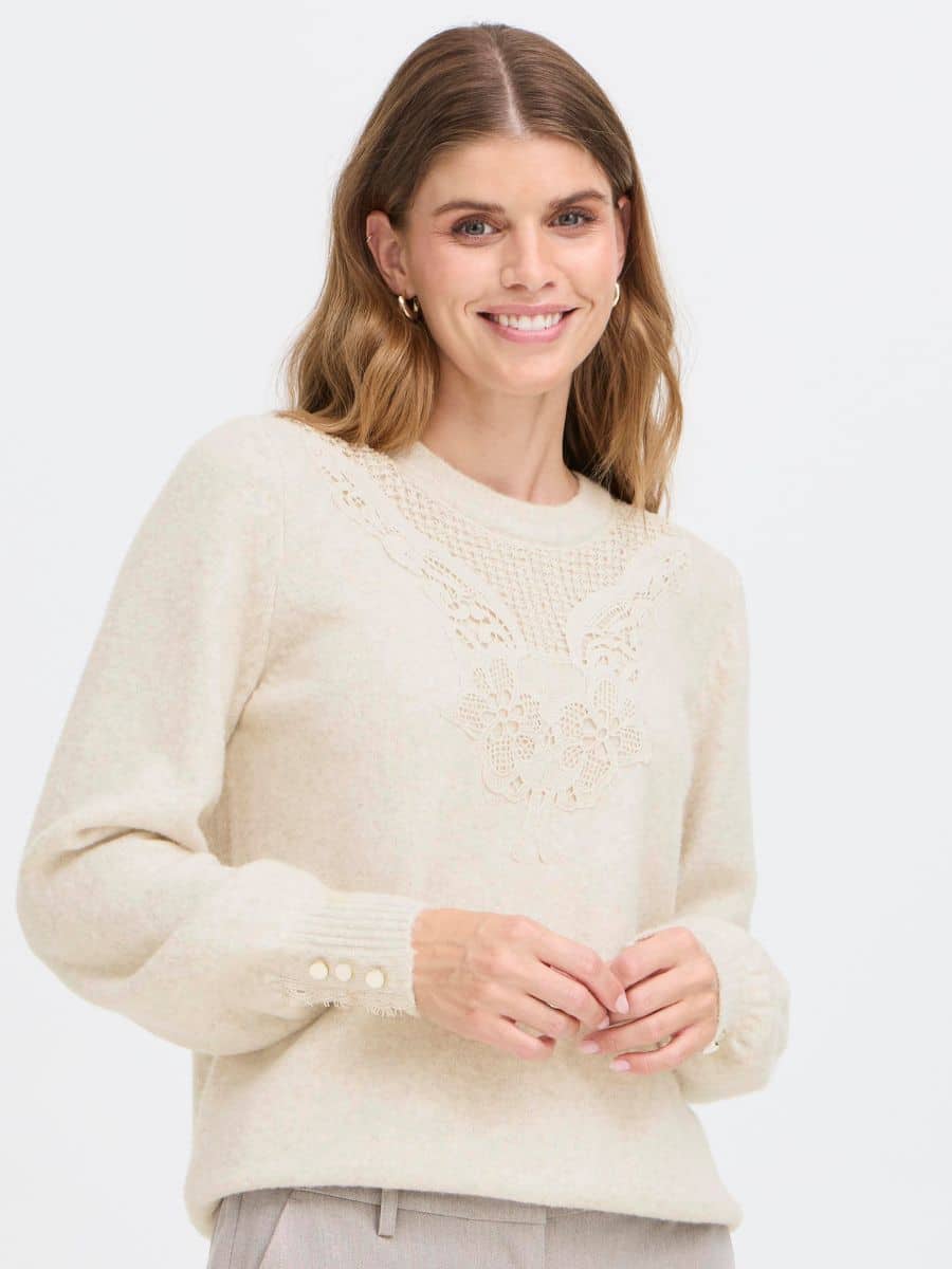 Fransa FRellen Strik – Oatmeal ♥ Denne smukke Fransa strik er i en smuk Off-white farve, og er fyldt med mange lækre detaljer. Strikken er lavet i lækre materialer, som gør den super behagelig at have på.