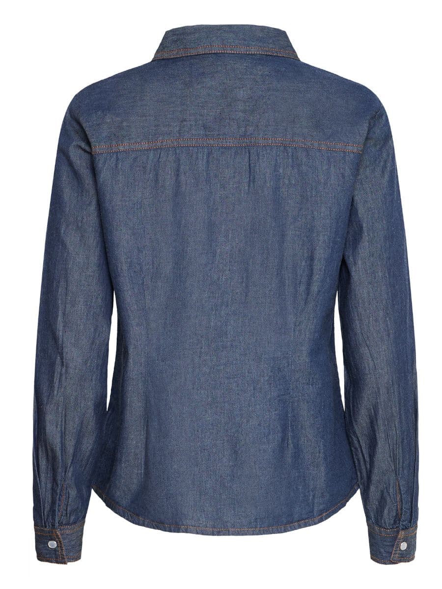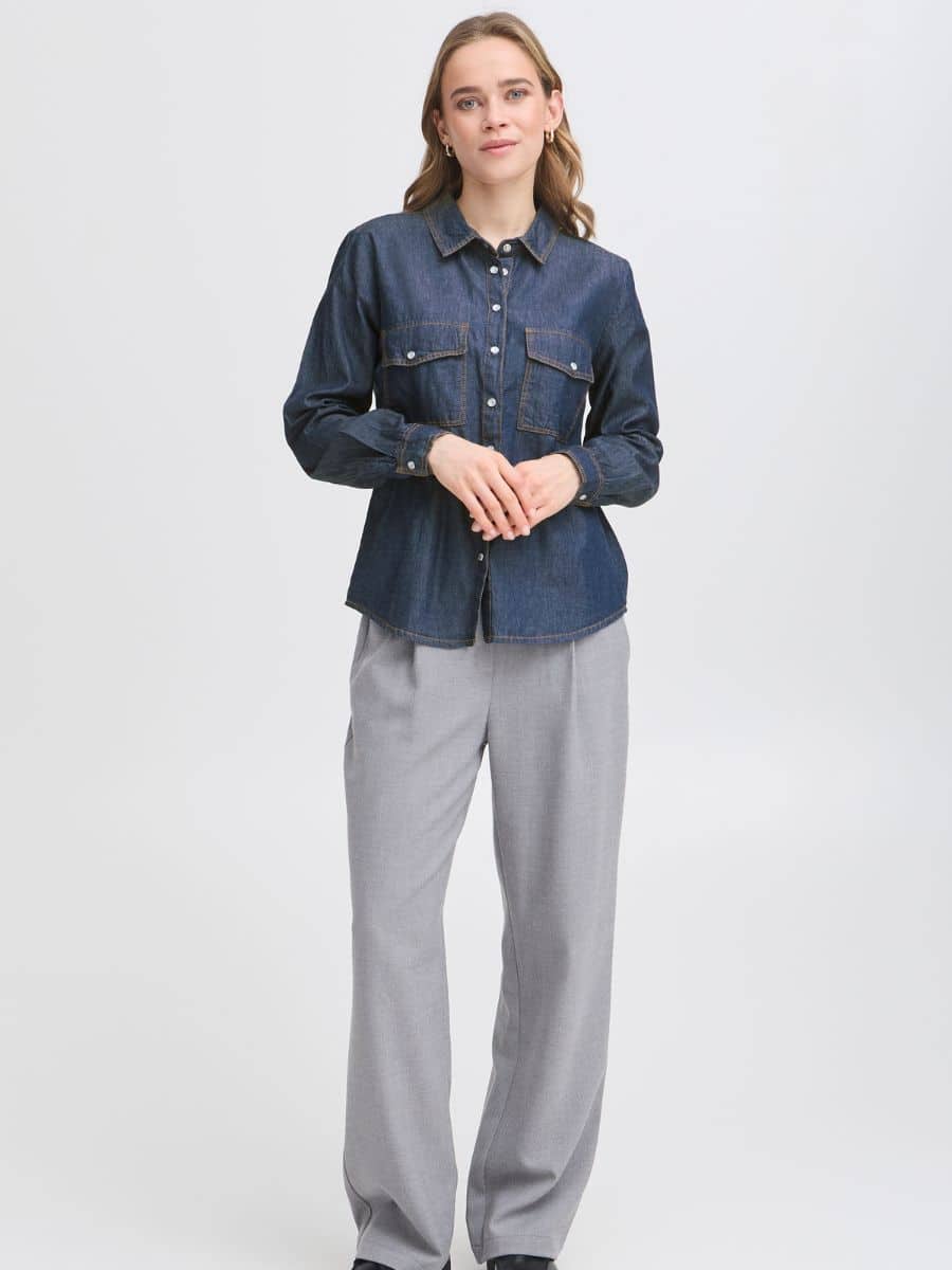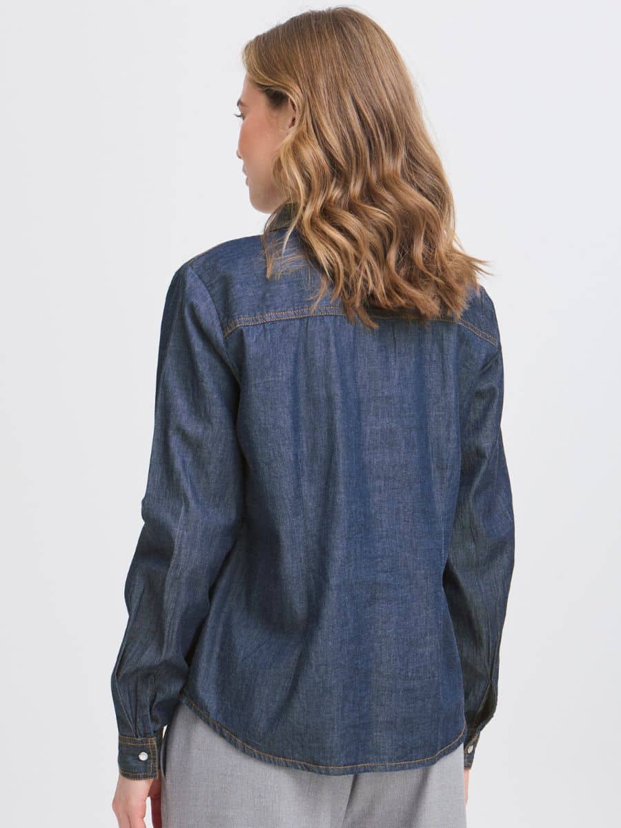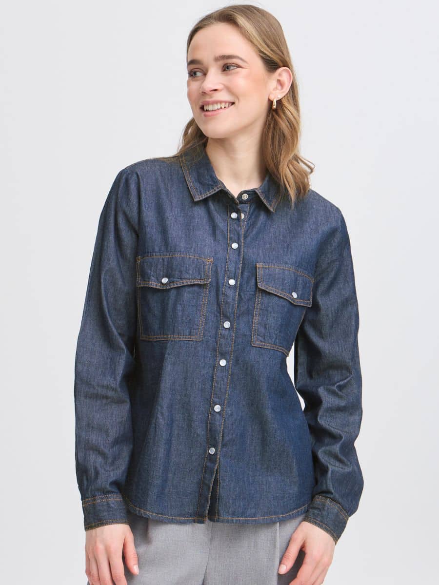 Fransa FRlarissa Bluse – Blue Denim ♥ Denne smukke Fransa skjorte er i en lækker mørk denim farve, skjorten er lavet i 100 % bomuld, som gør den lækker og luftig at have på. Skjorten er fyldt med en masse lækre detaljer, som gør den super smart.
