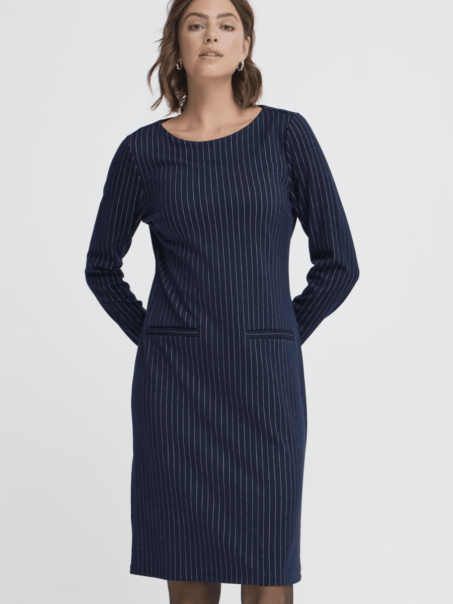 Kjolen har fine detaljer, der fremhæver silhuetten og tilføjer et tidssvarende touch, samtidig med at den forbliver enkel og elegant. Den kan styles med både flade sko eller hæle og kombineres med jakker, strik eller accessories for et komplet og moderne look. Frblenda-modellen er designet til kvinder, der ønsker en kjole med både komfort, alsidighed og stil.