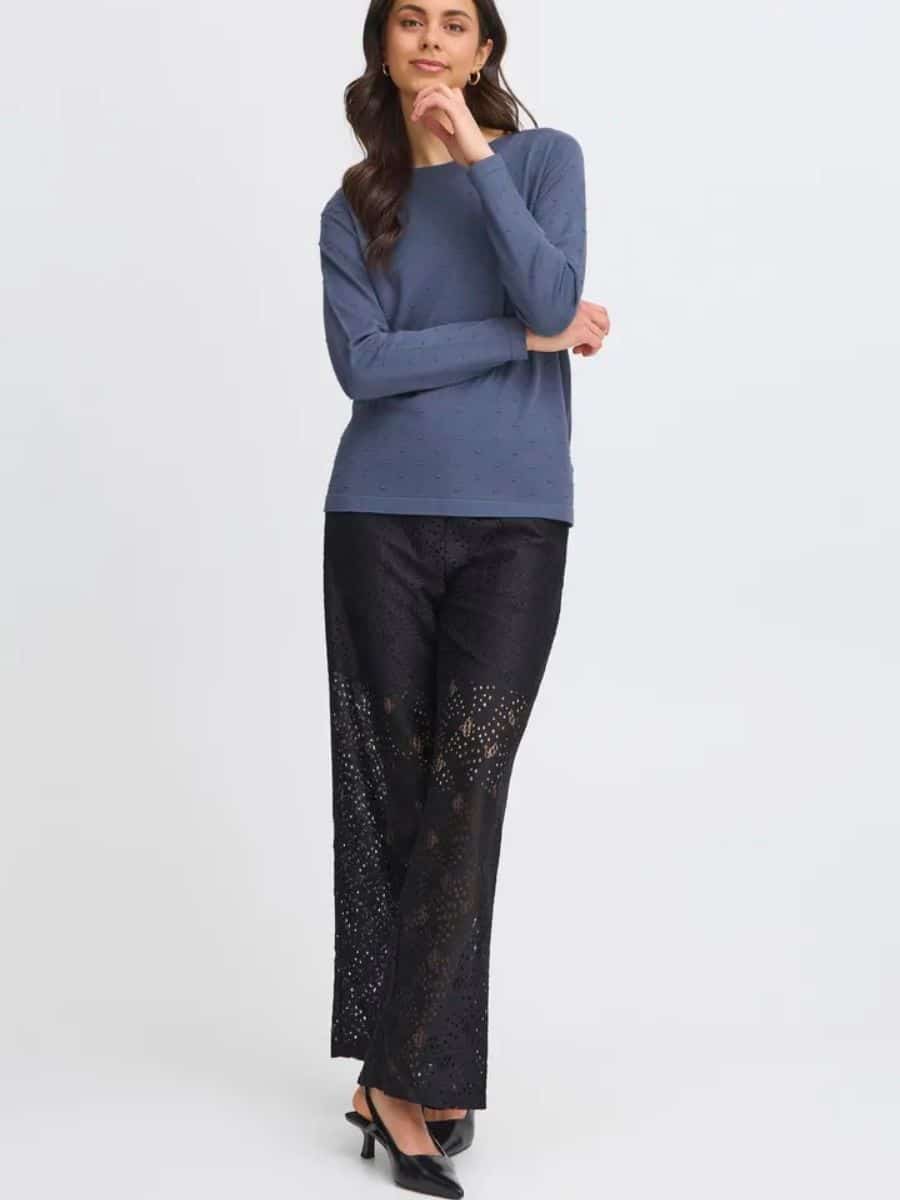 Styl denne smukke Fransa strik med et pas sorte habitbukser, og med et par smukke ballerinaer.