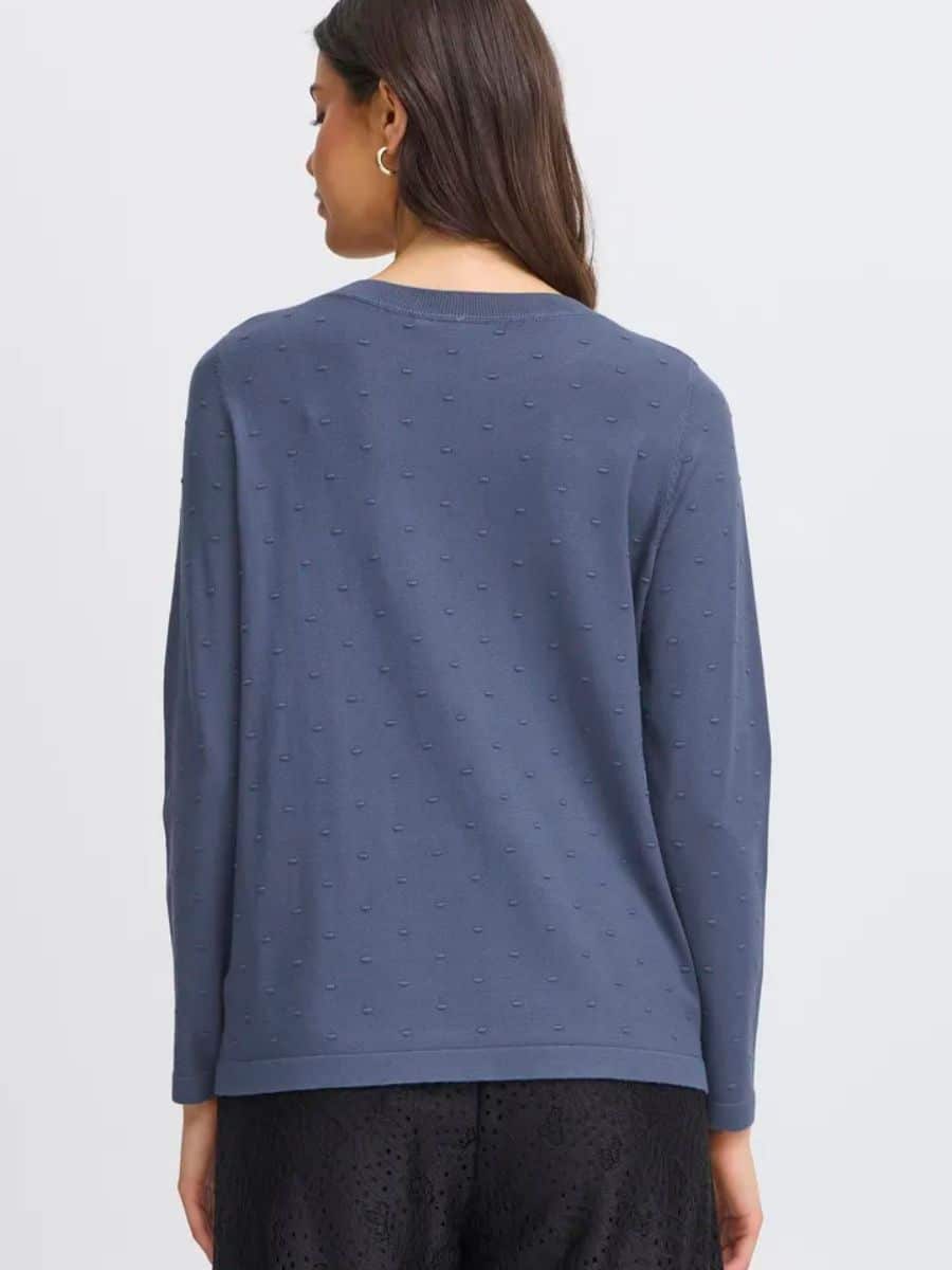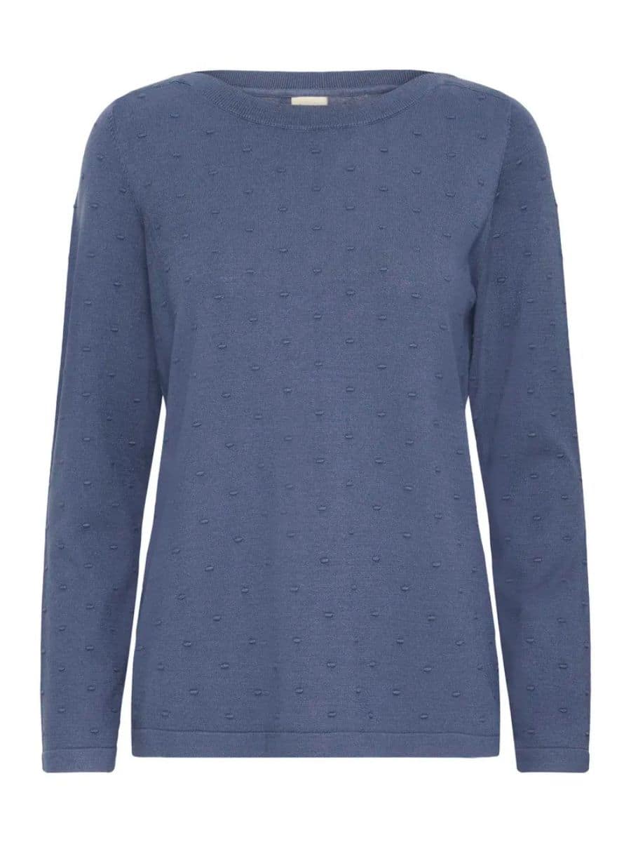 Fransa Strik Frkarianne – Blå ♥ Denne smukke Fransa strik er i en smart mørk blå farve, og med lækre prikker, strikken er lavet i lækre materialer, som gør den super behagelig at have på.