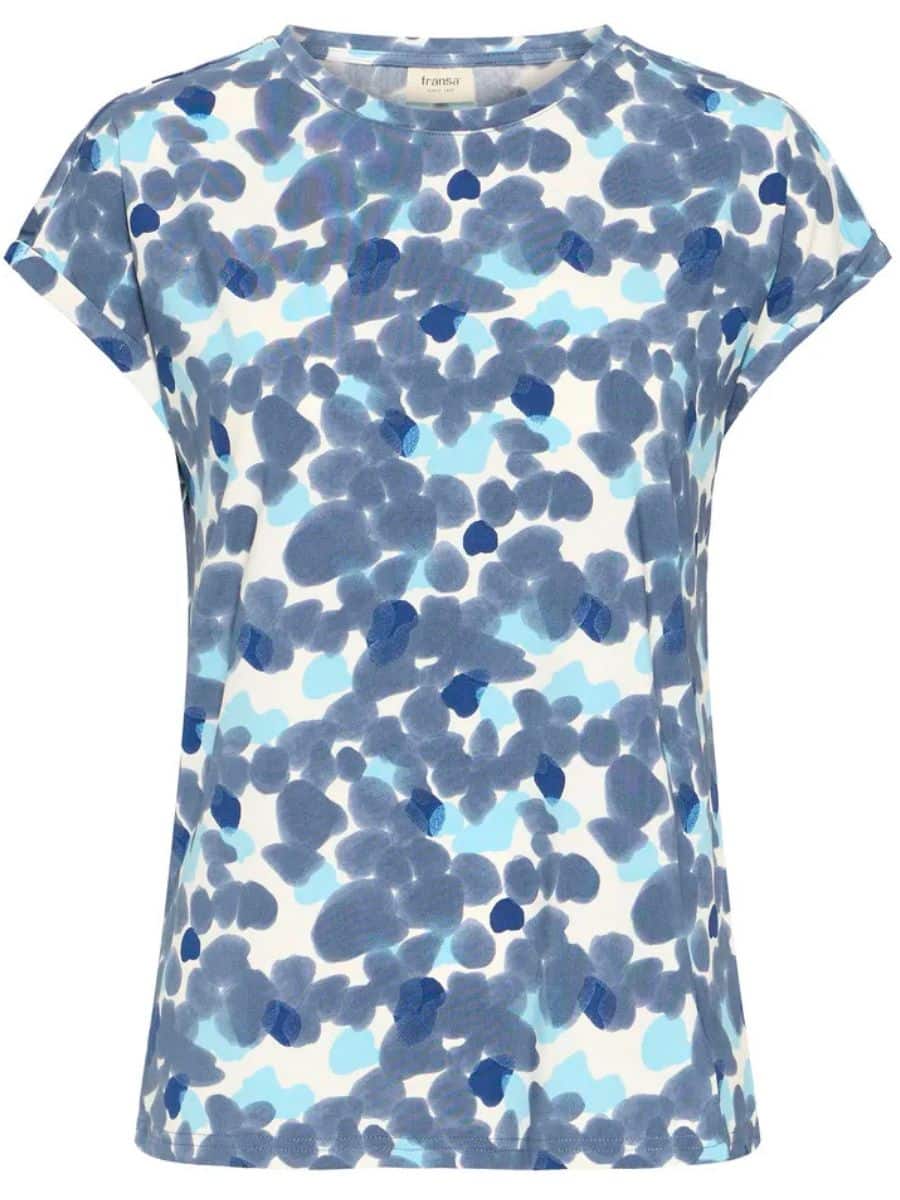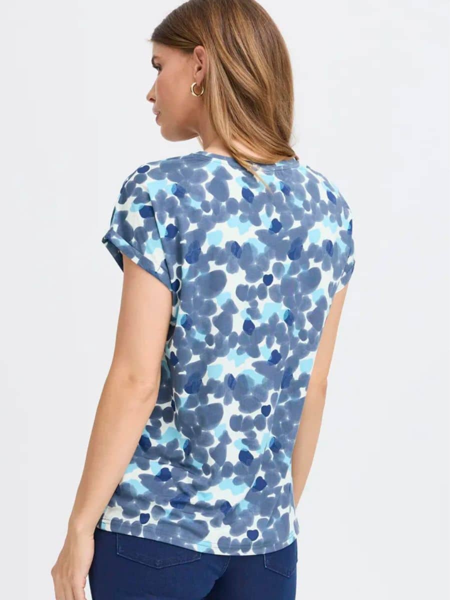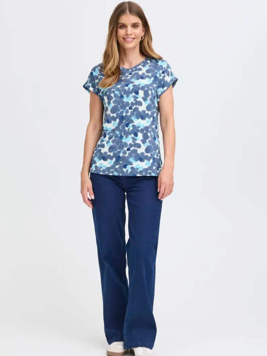 Fransa T-Shirt Frseen – Sea ♥ Denne smukke Fransa T-shirt er i et smart prikket mønster, i en masse lækre blå nuancer, T-shirten er lavet i lækre materialer, som gør den super behagelig at have på.