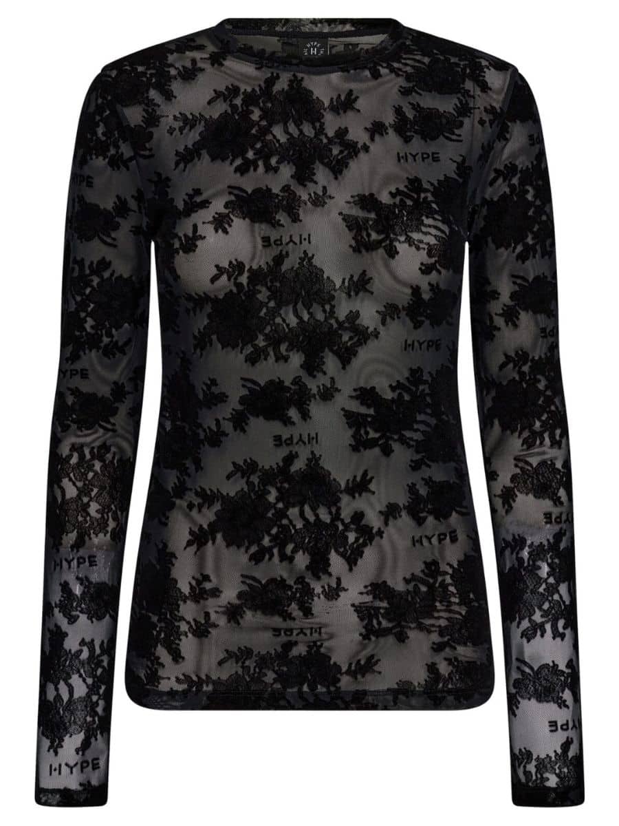 Hype the detail Mesh Bluse 850-14 – Sort ♥ Denne smukke Hype The Detail bluse er i et lækker mesh materiale, og med smukke blomster detaljer i et velour materiale, derudover er denne bluse lavet i lækre materialer, som gør den super behagelige og stretchy at have på.