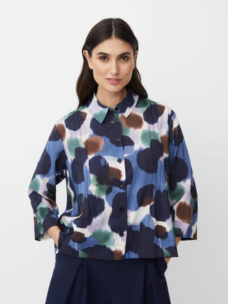 Masai bluse Malbilsan ♥ Denne smukke bluse fra Masai er i et smart prikket print, i blå, grønne og lilla nuancer, som giver et fedt farvespil til denne smukke bluse. Blusen er lavet i lækre materialer, som gør den super behagelig at have på.