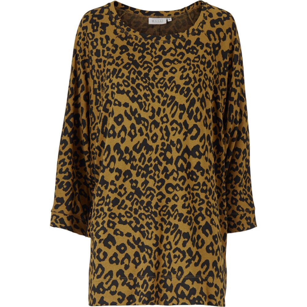 Flot bluse fra Masai med løs pasform og fint leopard print. Modellen har rundhals og trekvartlange ærmer. Blusen har en fin detalje knapper ned langs ryggen. kan styles med et par bukser og en let støvle for et feminint look.