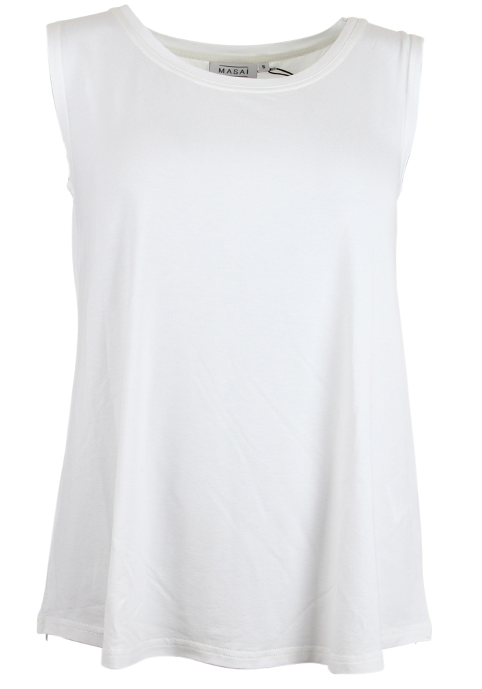 Lækker uundværlig basistop fra Masai i blød kvalitetsjersey. Stylen er uden ærmer og i en behagelig A-form som har et flot fald ned over kroppen. En must-have basistop der kan styles med alt.