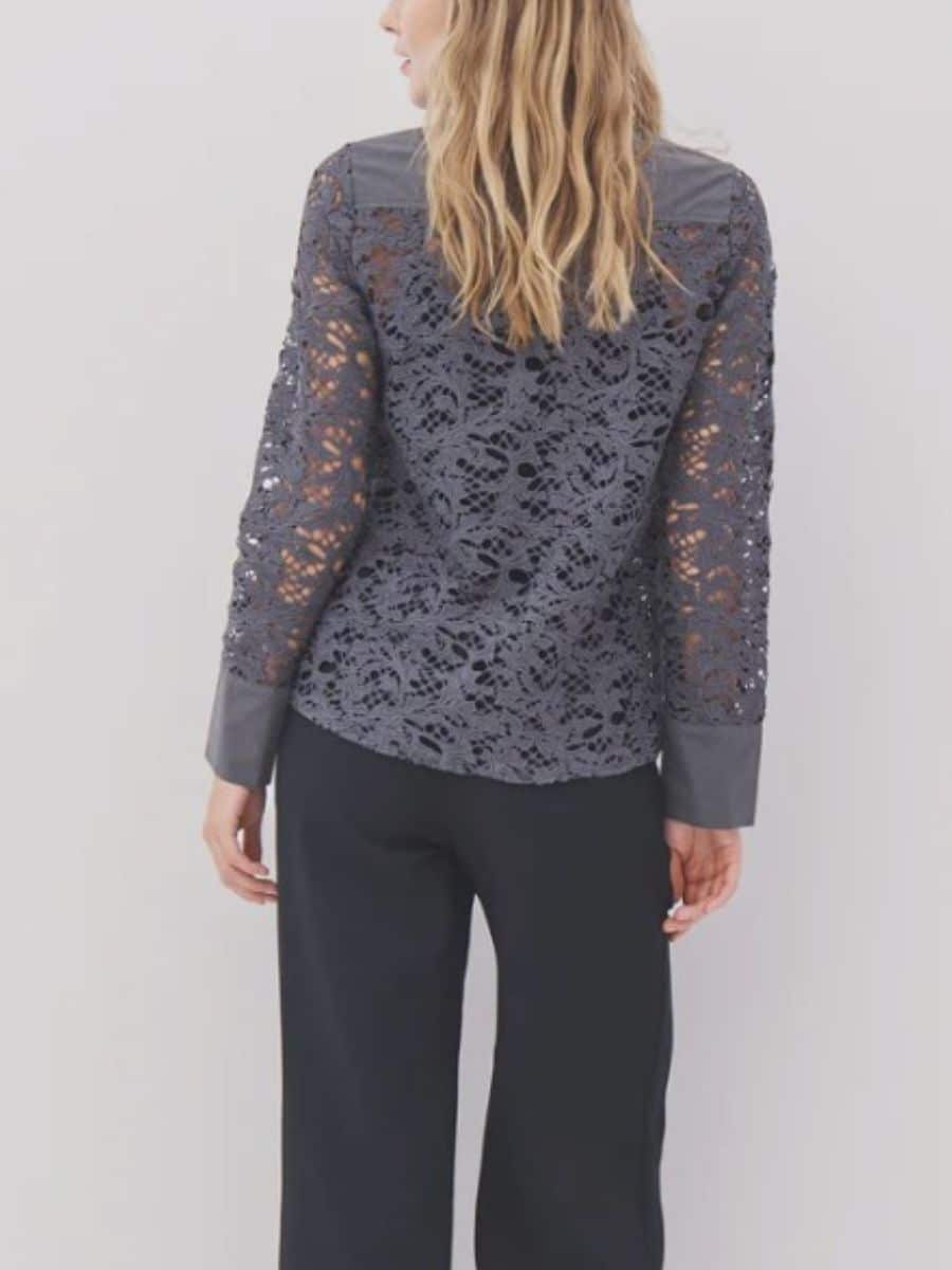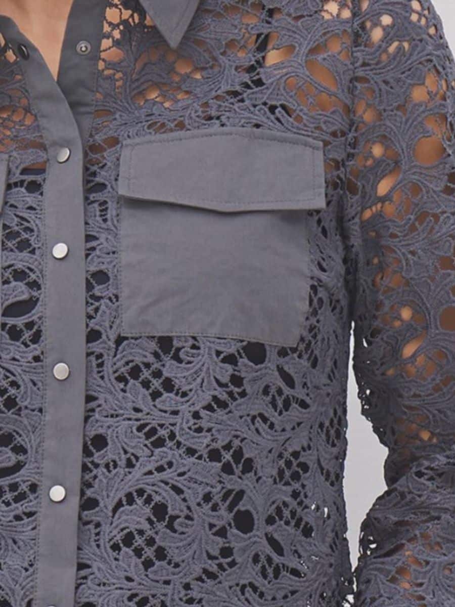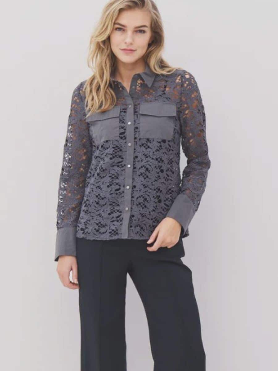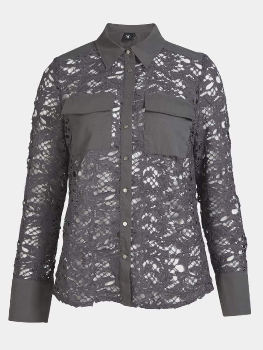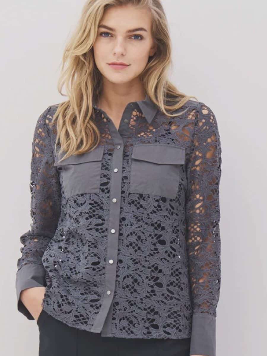 Denne smukke model er med en klassisk reverskrave, som går ned i en gennemgående tryk knappelukning, skjorten har lange og brede ærmer, som flader flot langs armene. Denne smukke skjorte har to store brystlommer foran, som er en fed detalje, og som giver denne ellers broderet skjorte et fedt look.