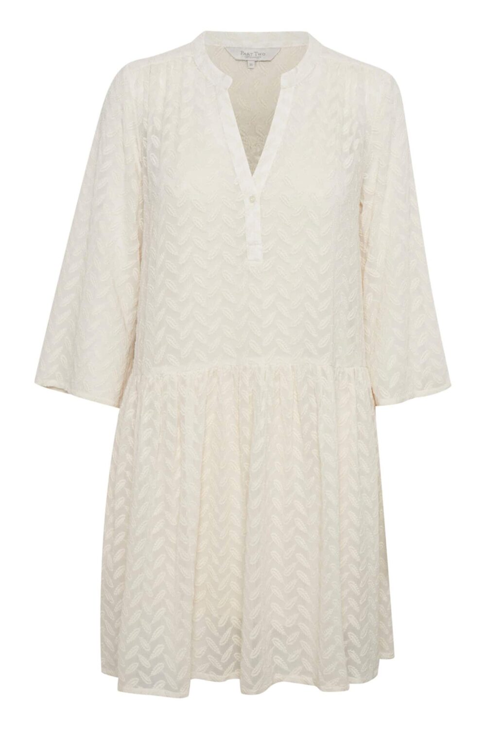 Smuk part two kjole i farven Sahara Sun, med et smukt mønster. Part two kjolen er med en åbenstående halsudskæring, samt er der en flot underkjole under. Ærmerne er korte, og kjolen sidder løst på kroppen. Part two kjolen er i en let kvalitet, og super rar til en lun sommerdag. Styl denne part two kjole til et par snørre sko, eller under en jakke.