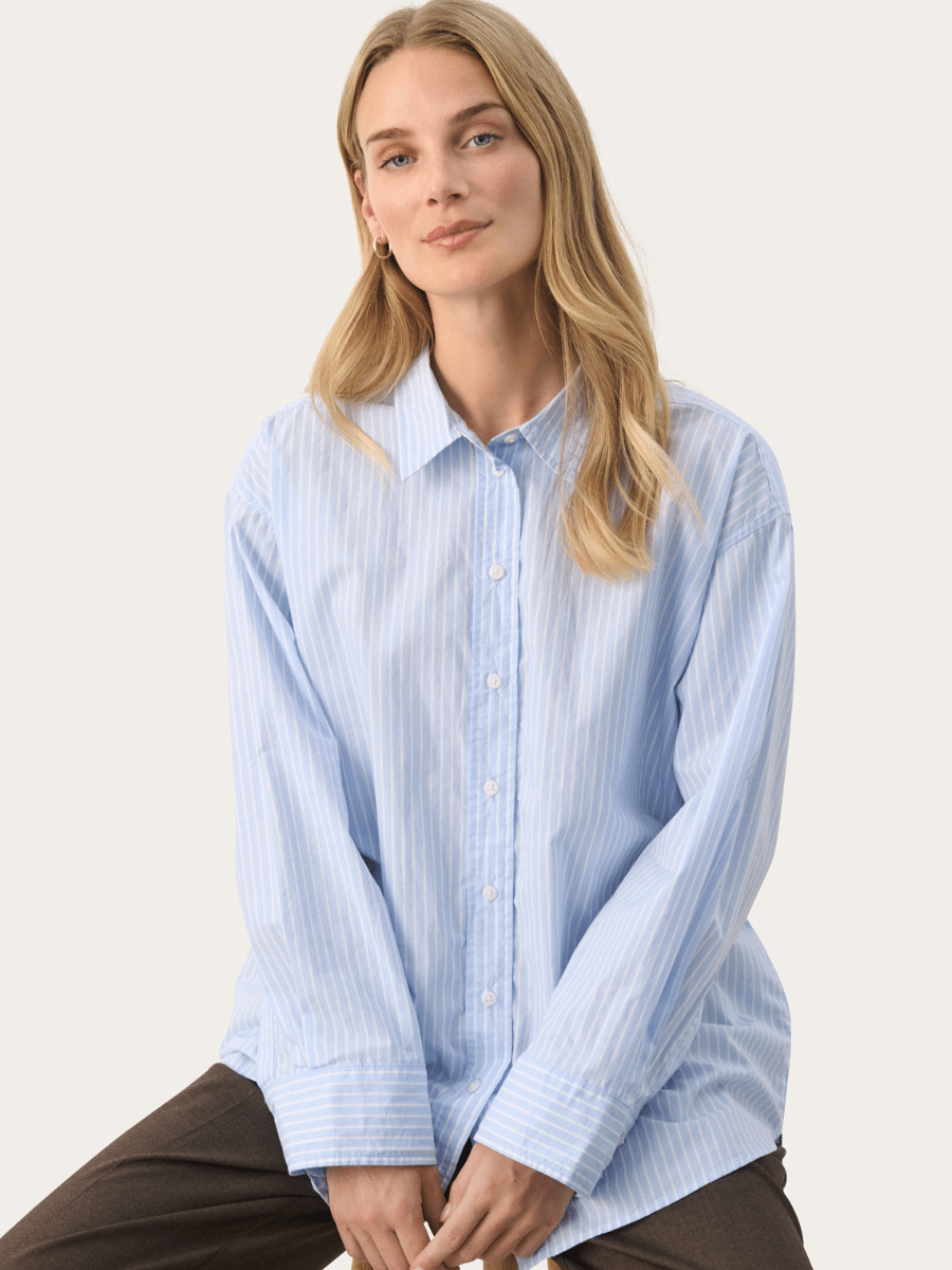 Giv din garderobe et tidløst og stilfuldt touch med Part Two Skjorte Savanna i Blue Stripe – en alsidig must-have til enhver lejlighed!