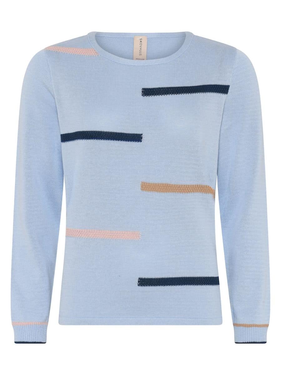 Denne smukke Skovhuus strik er med en klassisk rund halsudskæring, og med klassiske lange ærmer, med en smart ribt kant i bunden, med en smart stribe detalje. Denne klassiske striktrøje har en klassisk pasform, som gør den til et must have.