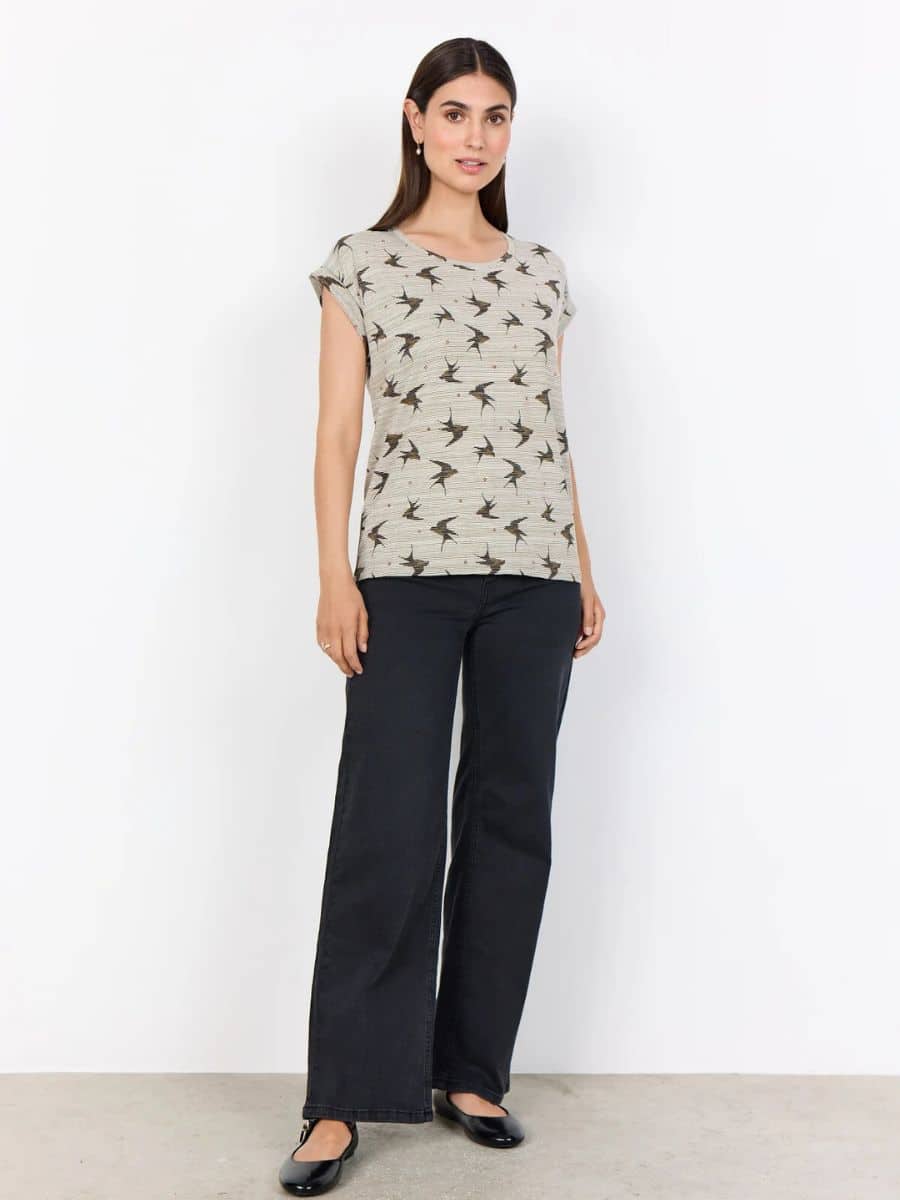 Denne smukke Soyaconcept T-shirt kan styles med et par mørkeblå jeans, og med en smart sandal, for at opnå et sommerligt look.