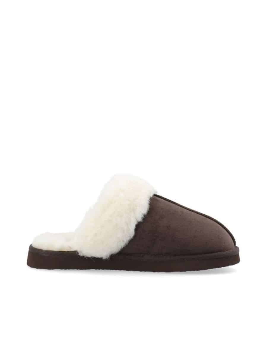 Disse hyggelige Bianco slippers i en mørk brun farve kombinerer komfort og stil på bedste vis. De er designet med et tidløst udtryk og fremstillet i materialer, der giver en blød og varm fornemmelse. Det luksuriøse plysfor, der kantpryder åbningen, sikrer ekstra varme og komfort, perfekt til de kolde dage derhjemme.