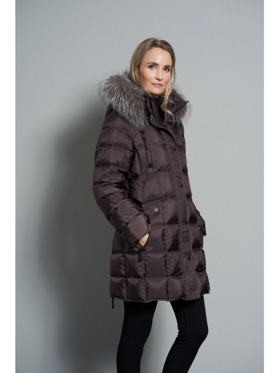 Junge Efterårs jakke i en flot ensfarvet brun . Modellen er med aftagelig hætte med pels ægte pels kant som er aftagelig også. Pelskraven er ægte vaskebjørn. Jakken er med gennemgående lynlås og med skrå side lommer og i en dejlig quilt. Denne Junge jakke er med smarte lynlås lommer lodrette ved brystet. Brug denne junge efterårs jakke gennem hele vinteren, det er en snart og varm jakke. Jakken kan vaskes i maskinen og husk at tage pelskrave af inden.