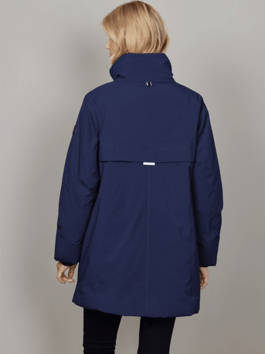 er en moderne og funktionel damejakke, der kombinerer komfort, kvalitet og et tidløst design. Den klassiske navyblå farve giver jakken et alsidigt look, som nemt kan styles med jeans, bukser eller nederdele.
