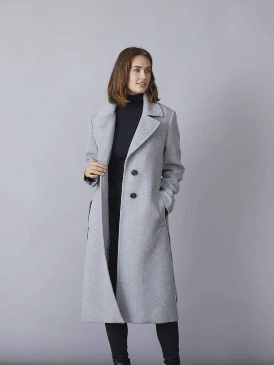 Den fine lysegrå farve tilføjer et strejf af underspillet elegance, som nemt kan kombineres med forskellige outfits og farver. Denne Junge frakke er det perfekte valg til dig, der ønsker et stykke overtøj, der både holder dig varm og samtidig udstråler klassisk, nordisk elegance.
