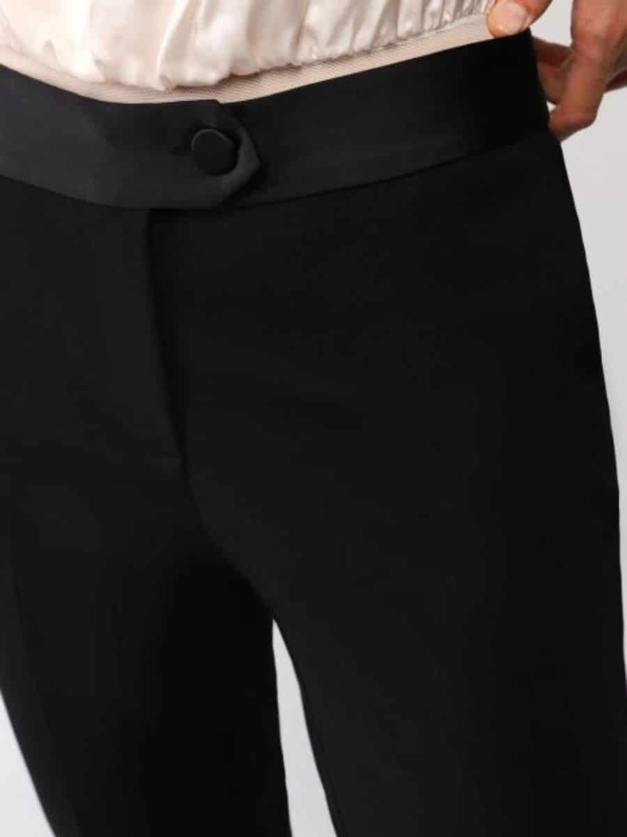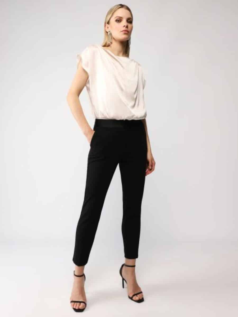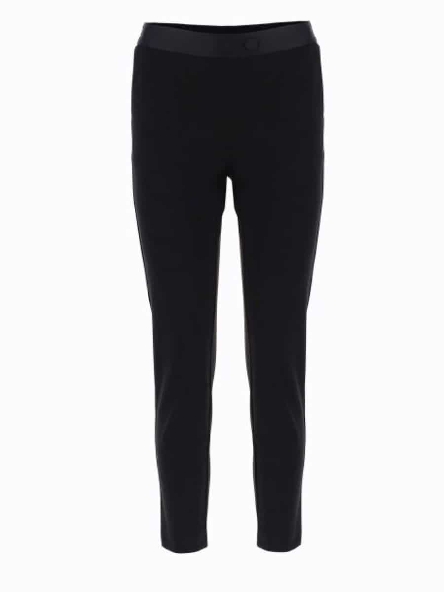 Imperial buks Pvn2 – Nero ♥ Bukserne er i sort, og er en stump buks. Buksen har en fast ligning rund i taljen, med en synlig knap, samt en ikke synlig knap. Bukserne har stik lommer foran, samt en paspoleret lomme bagpå. Bukserne har et skindende look ved taljen, samt på baglommen, ellers er buksen mat, som er en smart detalje, og gør buksen unik.