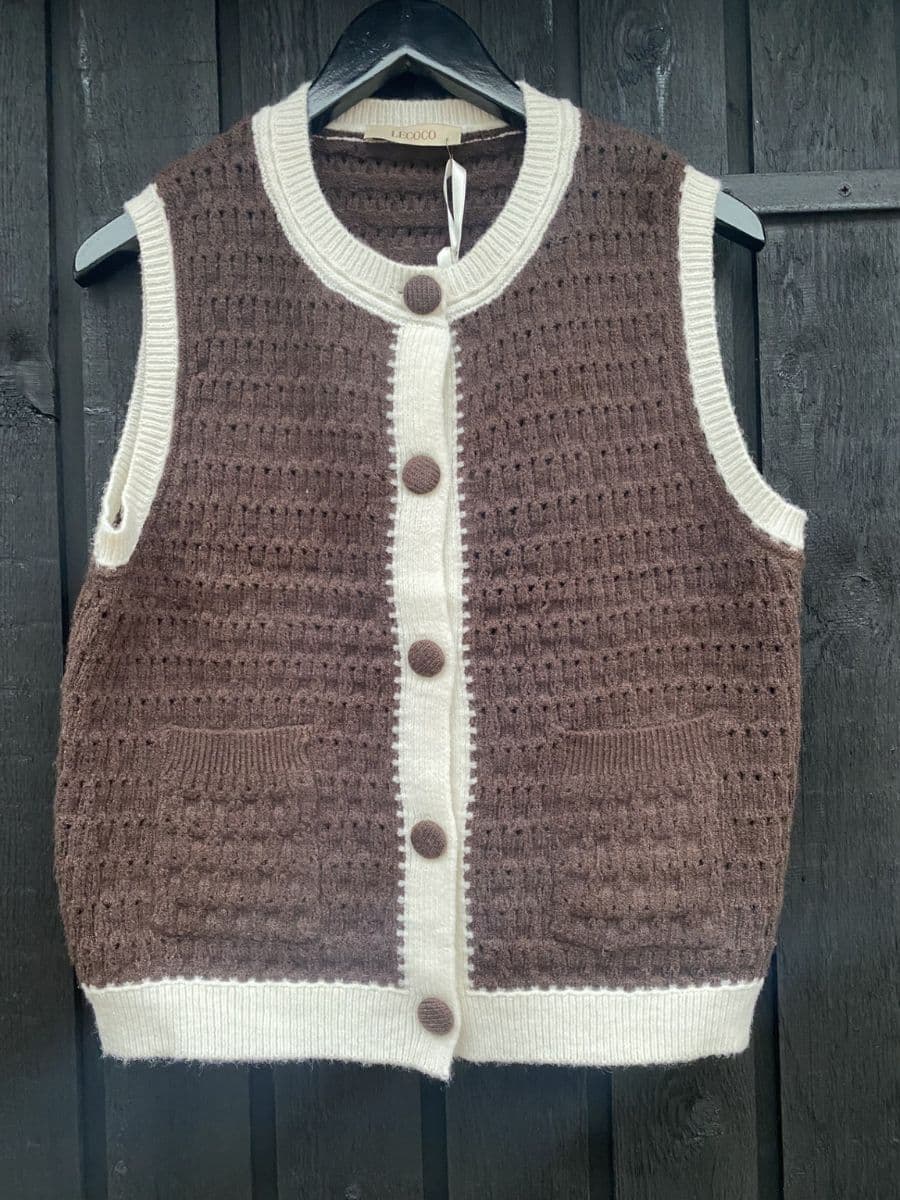 | Stylenummer | Lecoco Strik Vest 34839 - Brun/Off-white |