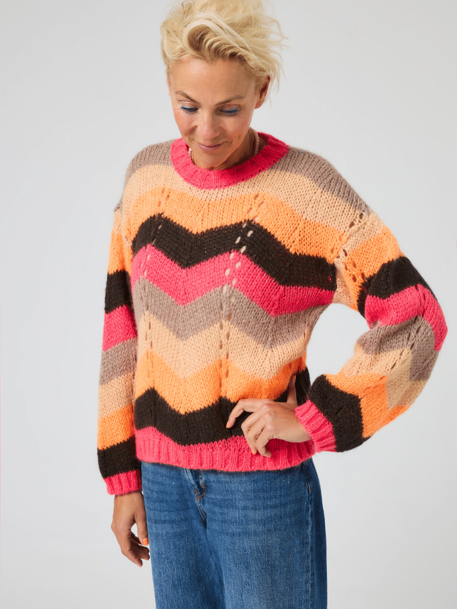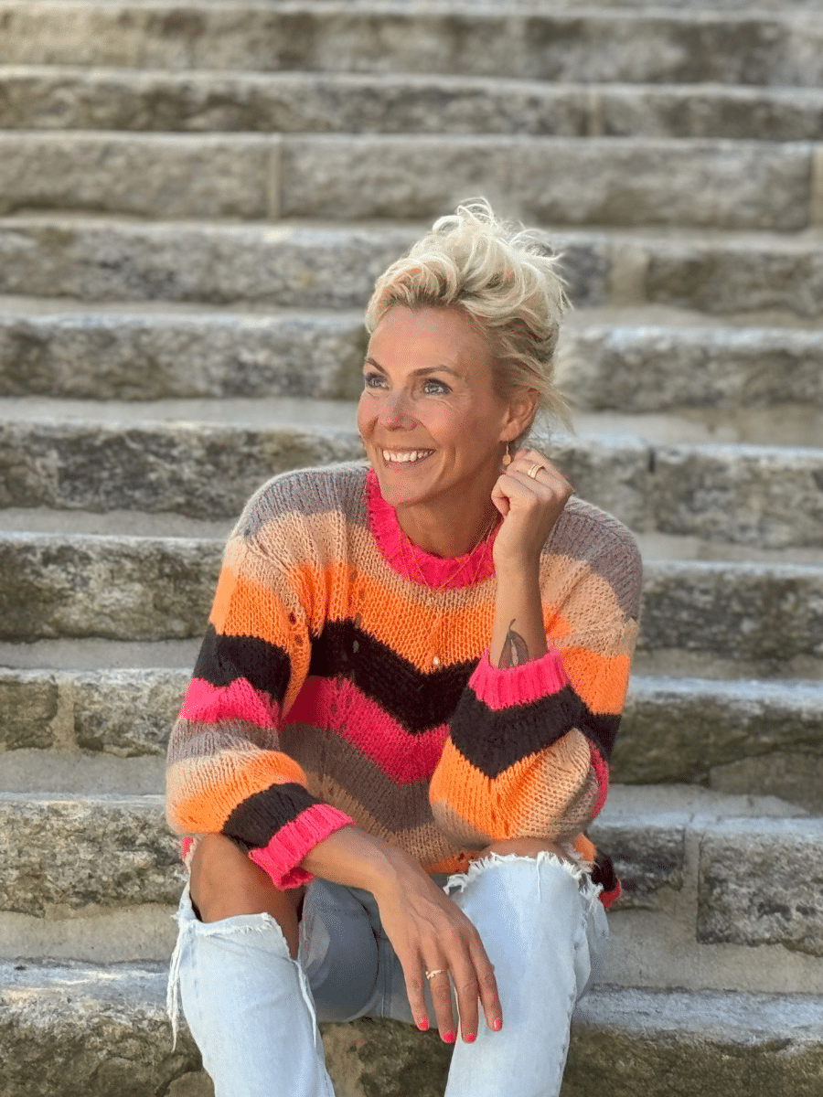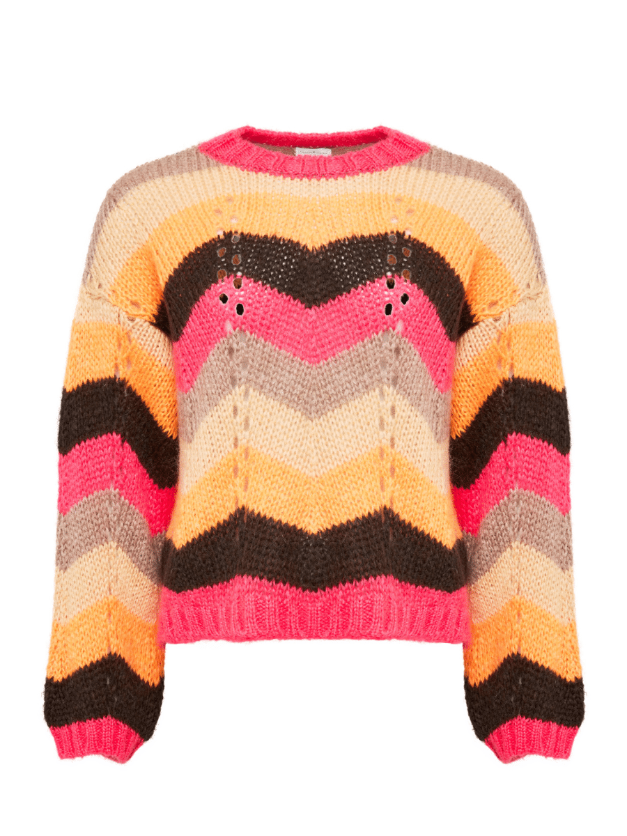 Fremstillet af blødt og holdbart materiale, holder denne strik trøjen faconen sæson efter sæson. Perfekt til dig, der ønsker en komfortabel, stilfuld og farverig striktrøje, der skiller sig ud.