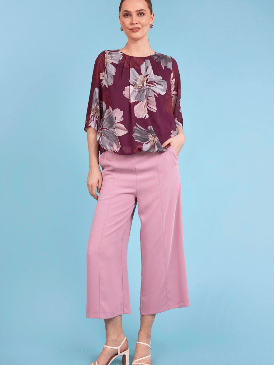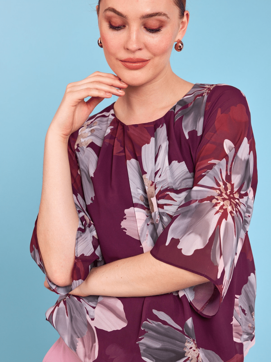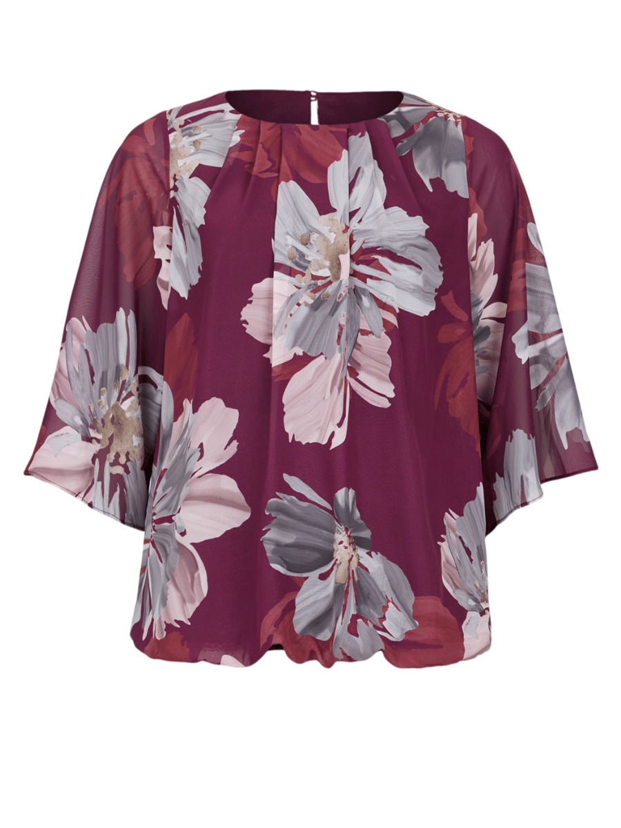 er en smuk og alsidig damebluse, der kombinerer klassisk stil med høj komfort. Blusen har en flatterende pasform, der sikrer et elegant look, og det bløde materiale føles behageligt hele dagen. Den tidløse bordeauxfarve gør blusen nem at style til både hverdag og fest.