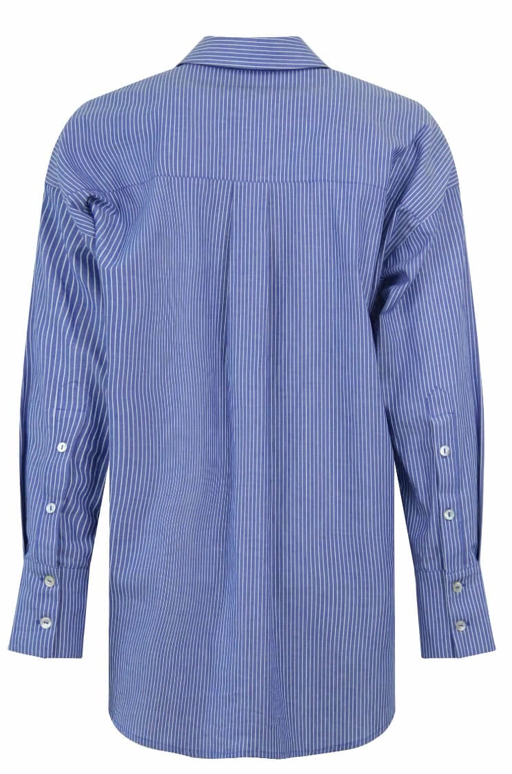 Smart stribet skjorte fra Fine Cph, skjorten er med fine tynder blå og hvide striber. Modellen er gennemknappet, med skjult knaplukning og en synlig knap ved halsen, samt skjorten er med reverskrave. Derudover har skjorten slis ved begge ærmer med knaplukning og en stor brystlomme i venstre side. Kvaliteten er 100% Bomuld og skjorten styles let til bukser, med en strik eller vest over, eller bare som den er, mulighederne er mange