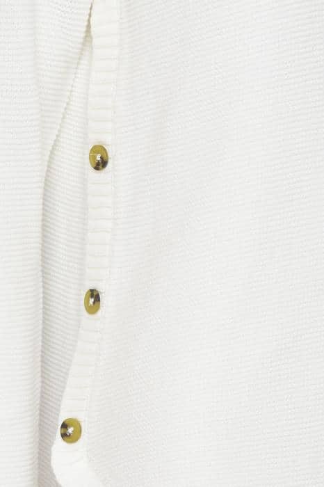 Lækker og anderledes striktrøje fra Fransa, i helt klassisk hvid. Modellen er med en fin v-hals, lange ærmer og en snydeslis i hver side, med knap detaljer. Kvaliteteten er blød, lækker og varm, lige til at hoppe i her til efteråret og vinteren. Du kan let style den til både bukser, nederdele og over kjoler, for et lækkert look.