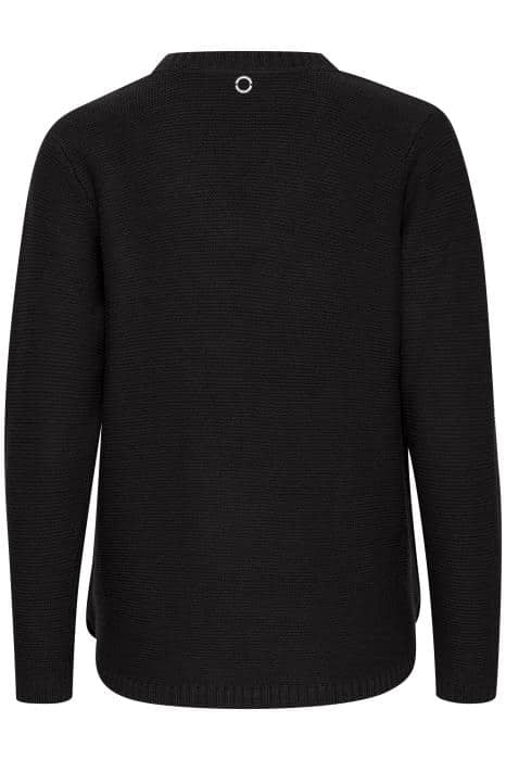 Lækker og anderledes striktrøje fra Fransa, i helt klassisk sort. Modellen er med en fin v-hals, lange ærmer og en snydeslis i hver side, med knap detaljer. Kvaliteteten er blød, lækker og varm, lige til at hoppe i her til efteråret og vinteren. Du kan let style den til både bukser, nederdele og over kjoler, for et lækkert look.