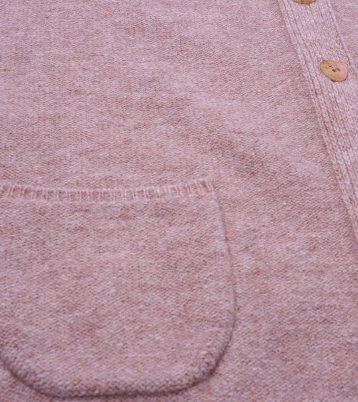Smuk Mansted strik i en sød rosa farve. Modellen er med en rund halsudskæring og har ingen ærmer. Strikken er med en fin tynd ribkant ved både ærmegabet, halsudskæringen og forneden af strikken. Denne strik har to lommer foran, og er med gennemgående knapper. Strikken har ellers en virkelig sød efterårs farve, som du nemt kan bruge over en skjorte og et par smarte jeans, for at opnå et elegant og afslappet look.