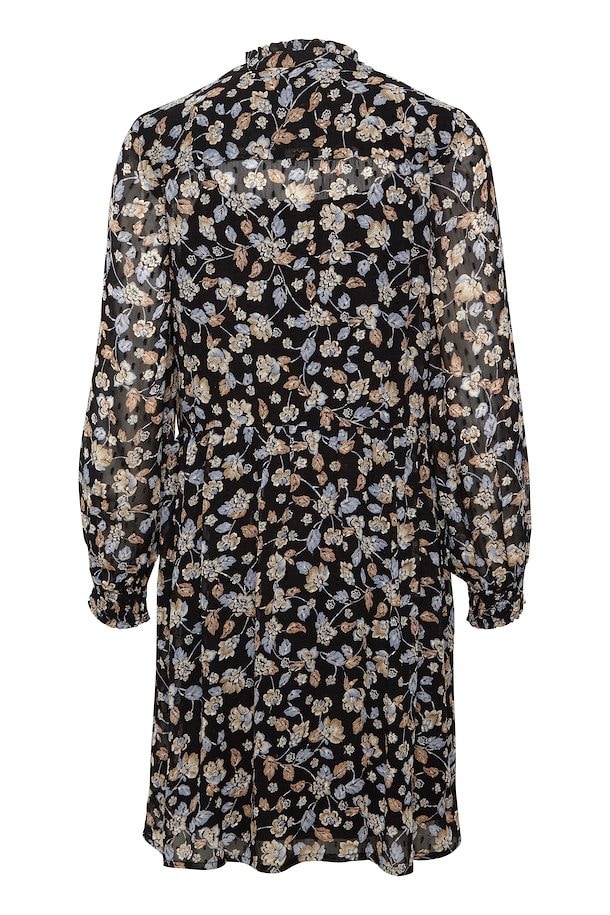Flot blomstret kjole fra Part Two med rundhals og med stolpe lukning foran med knapper. Modellen er med små fine flæse kanter foran samt med lane ærmer som afsluttes med elastik rib kant. Fra taljen og med har kjolen vidde. Style denne kjole med støvlet eller hæl