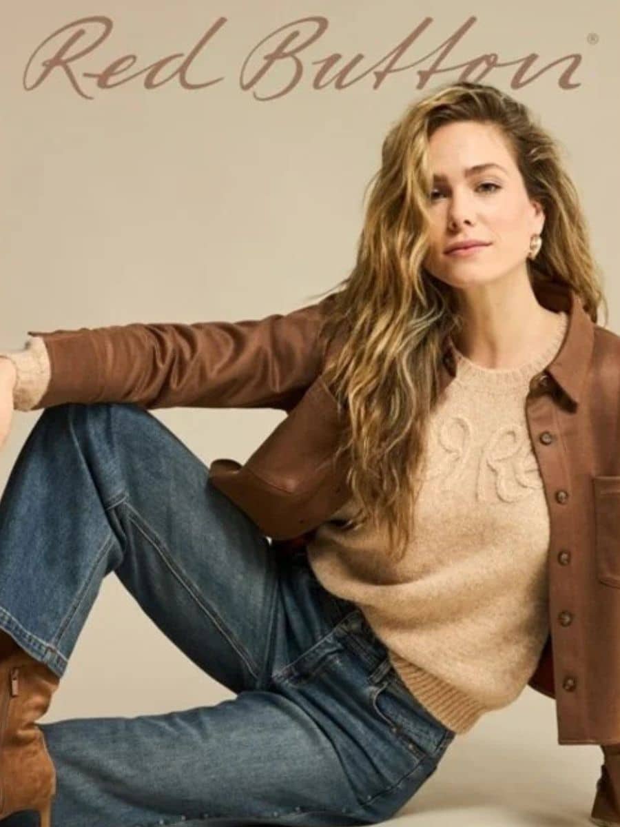 Styl denne lækre Red Button strik med et bar smarte sorte bukser, og med et par hvide sneakers.