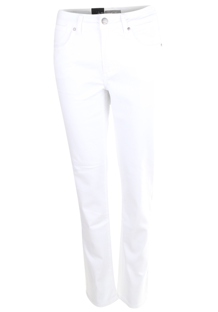 Smart enkel 5-pocket lærreds buks fra C-ro, med diskrete stikninger på baglommerne. Buksen har fast linning og bælte stropper, samt lynlås og knaplukning. Model Vera er til dig der ønsker høj talje og lige ben.