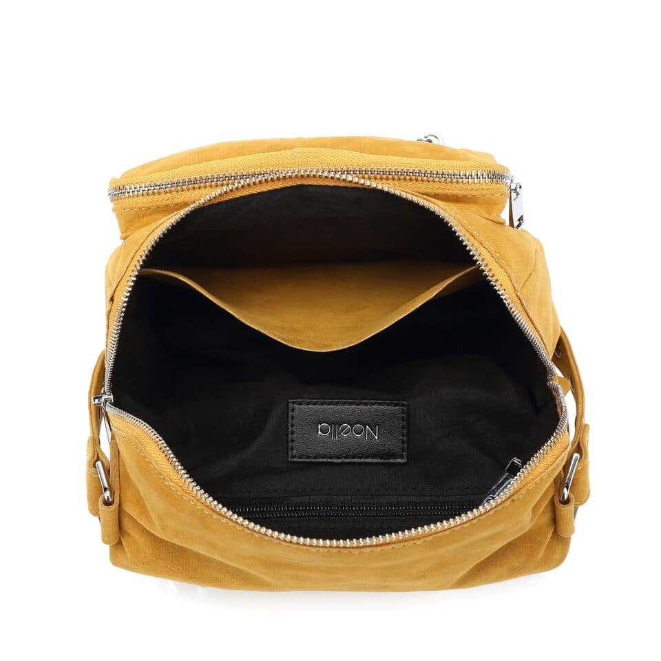 Smart ruskind taske fra Noella i flot gul farve. Modellen Silvia er den model med 2 hanke en kort og en cross over hank. Detaljerne er smarte lynlås og med nitter på den korte hank. Brug denne taske i byen eller på jobbet