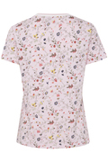 Blomstret T – Shirt fra Fransa med åbentstående halsudskæring, ærmerne er korte og ellers en helt klassisk T – Shirt som er flot at style til jeans eller lærreds nederdel og en let snøre sko. Kvaliteten er i Rent Bomuld og virkelig behagelig at have på